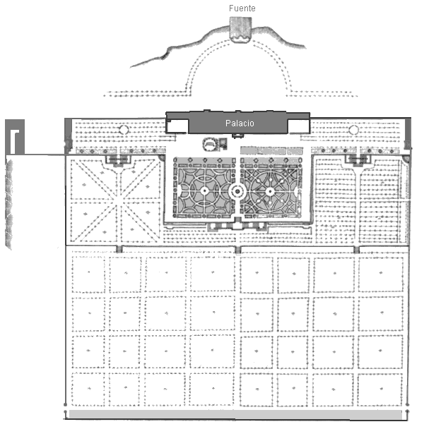 Este conjunto monumental que forma el Palacio, los jardines de trazado regular situados en su base y el parque agreste que los prolonga, constituye uno de los pocos ejemplos que quedan en España de una organización completa de lo arquitectónico y lo rural.